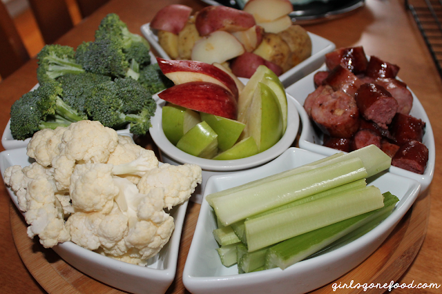The sausage and granny smith apples were my favorite dippers for this fondue.